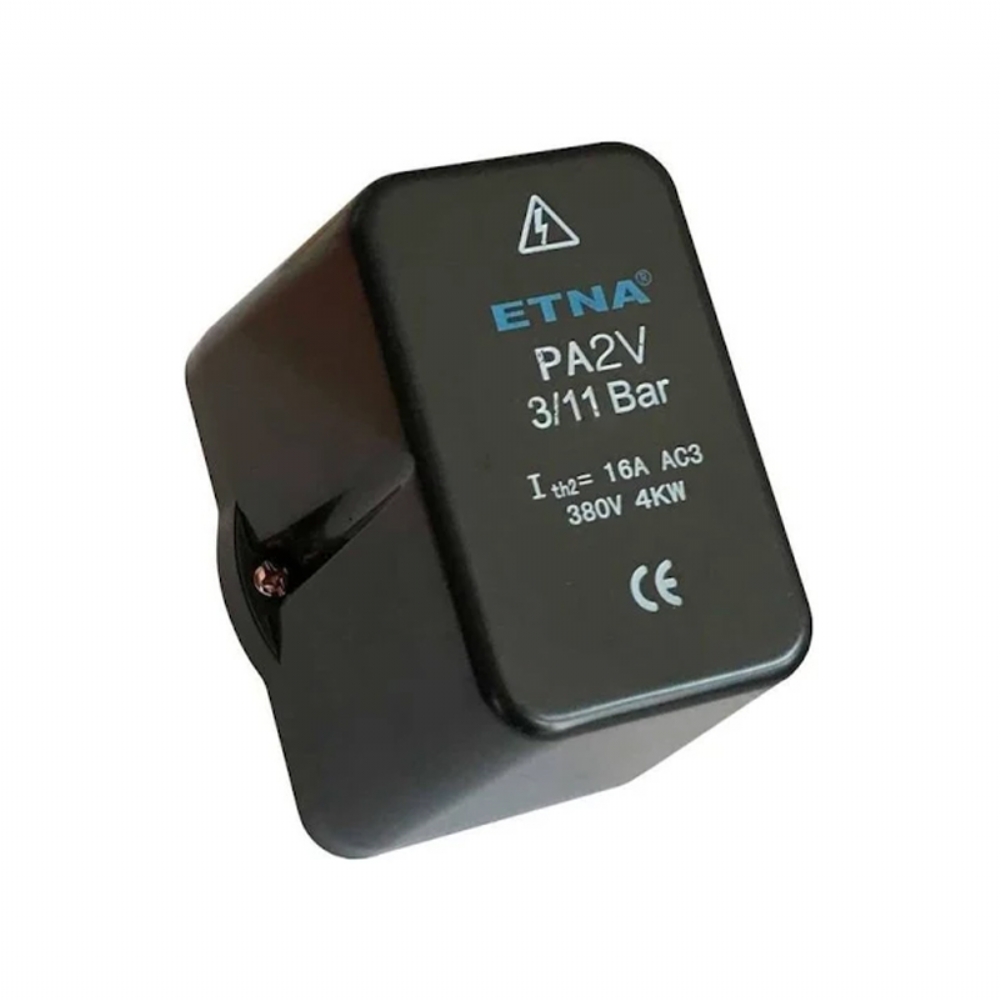 Etna şalterler hem hidrofor hem kompresör sistemlerinde kullanılabilmektedir. Tahliye parçası ürünle birlikte gelmekte olup, istenirse şalter gövdesine takılarak kompresörlerde kullanılabilmektedir. Etna şalterler TSE ve CE belgelidir.